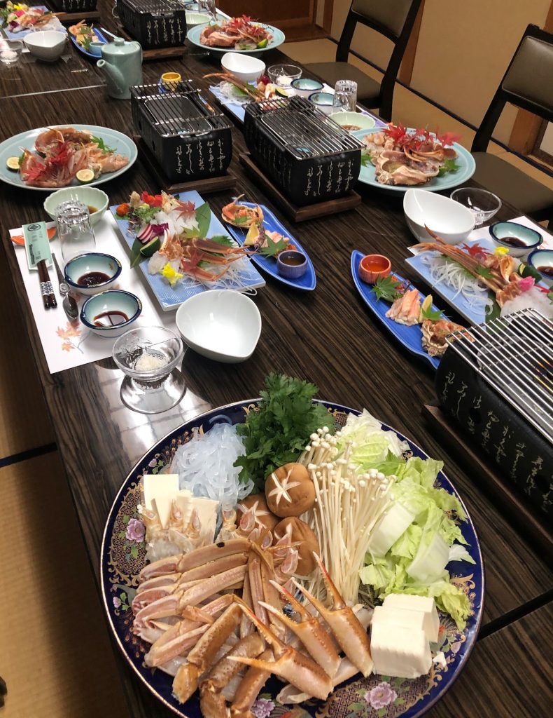 (↑luru近くのお料理屋さんで頂いた蟹料理です)蟹シーズンは、県内、特に海岸付近の宿が混み合います。今年のご予約もお早めに。