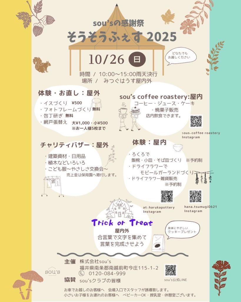 場所:福井県南条郡今庄115-1-2 (sou’s 店舗内外にて)